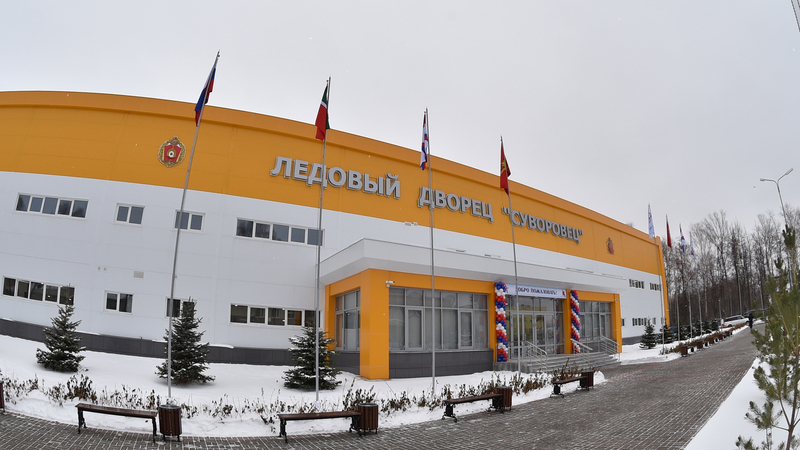 Ледовый дворец Казанского суворовского военного училища «Суворовец» расположится на территории учебного заведения. Объект представляет собой крытый ледовый каток с трибунами, рассчитанными на 296 зрителей. Площадь ледовой арены составляет 1600 кв.м., размер коробки – 28 х 58 м. Общая площадь спортивного объекта составляет 3999 кв.м. Заливная машина в наличии.