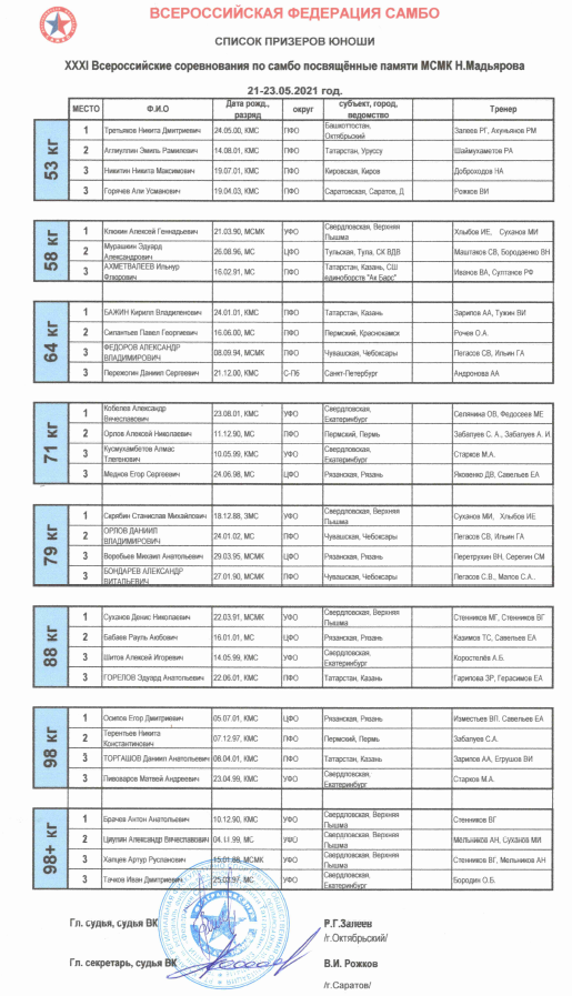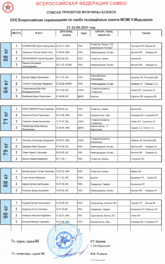 С 21 по 23 мая в спортивном комплексе «Олимпиец» в Казани прошли Всероссийские соревнования по самбо, посвященные памяти МСМК Накипа Мадьярова. В церемонии открытия соревнований принял участие первый заместитель министра спорта Республики Татарстан Халил Шайхутдинов.