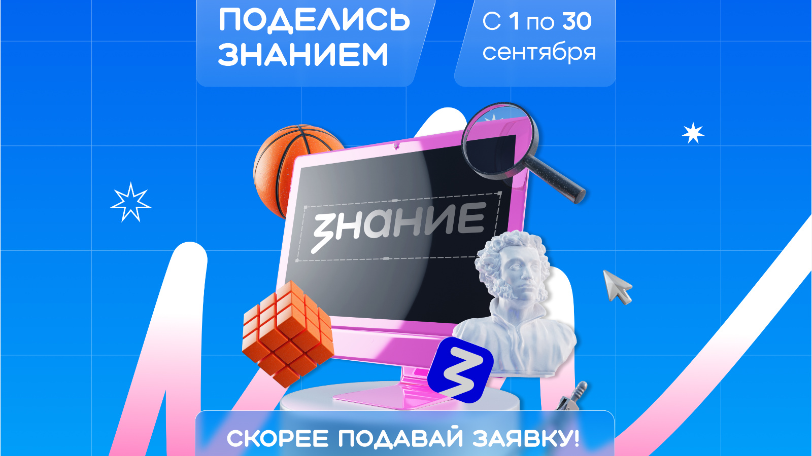 В рамках национального проекта «Молодёжь и дети» Российское общество «Знание» с 1 по 30 сентября проведет Всероссийскую акцию «Поделись своим знанием». На базе школ, колледжей, техникумов, вузов и других образовательных организаций страны пройдут просветительские уроки и мастер-классы, а выдающиеся деятели страны поделятся своими знаниями в науке, экологии, медиа, технологиях, искусстве и спорте.