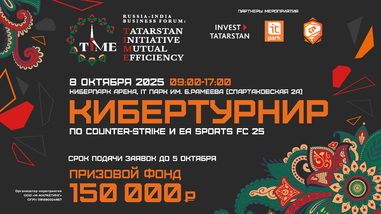 Бизнес-форум «TIME: Россия – Индия. Взаимная эффективность» впервые пройдет в Казани 8-9 октября. Деловая программа форума объединит на площадке ИТ-парка им. Башира Рамеева сессии по ключевым направлениям: инвестиции и финансы, рынок труда, образование и наука, ИТ и цифровые технологии, медицина, нефтегазохимический комплекс, сельское хозяйство, киноиндустрия и медиасфера.