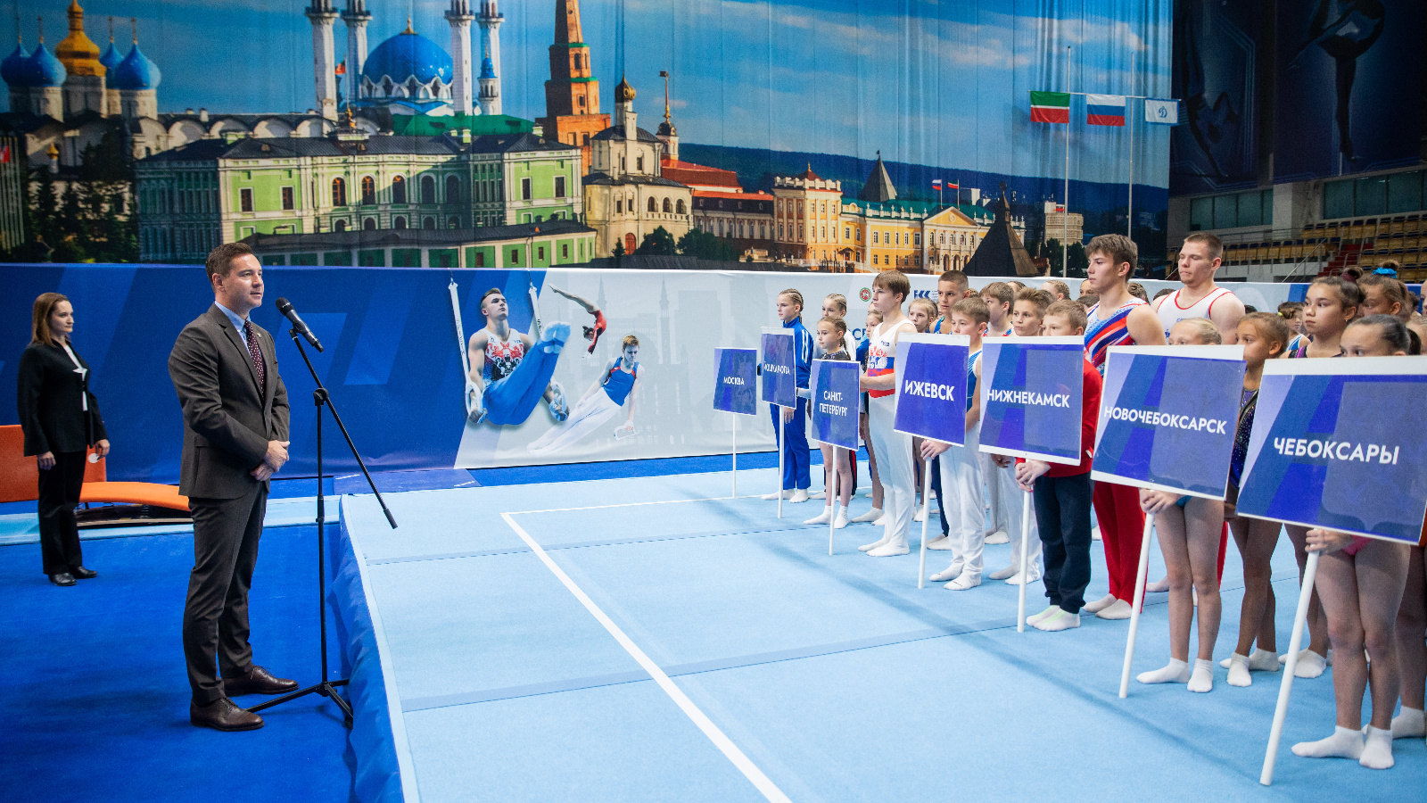 «Добрый вечер, дорогие друзья, дорогие наши спортсмены, в первую очередь. Вы знаете, как мы в Татарстане трепетно, вообще ко всем видам спорта, но в том числе и к спортивной гимнастике, относимся. Сегодня наши большие соревнования. Я хочу вам всем пожелать успехов. Тем более с этого года большая мотивация. Вы прекрасно знаете, эти соревнования квалификационные. Можно выполнить нормативы мастера спорта, кандидата в мастера спорта, поэтому я вам всем желаю успехов. Желаю достичь тех высот, которые внутри себя вы ставите, тех результатов, которые вы хотите достичь. У нас здесь все для этого подготовлено, у нас очень хорошие снаряды, у нас очень хорошая атмосфера, у нас очень хорошая аура. Будем за всех за вас болеть, потому что за вами наше будущее. Ребята, я вас всех поздравляю и поздравляю нас всех с открытием этих замечательных соревнований», – поприветствовал участников Владимир Леонов.