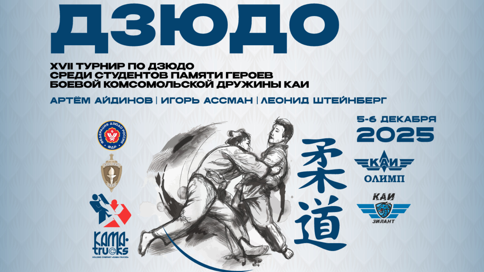 C 5 декабря по 7 декабря на базе культурно-спортивного комплекса «КАИ ОЛИМП» и КНИТУ-КАИ пройдет XVII Всероссийский турнир по дзюдо среди студентов, посвященный памяти героев боевой комсомольской дружины КАИ.