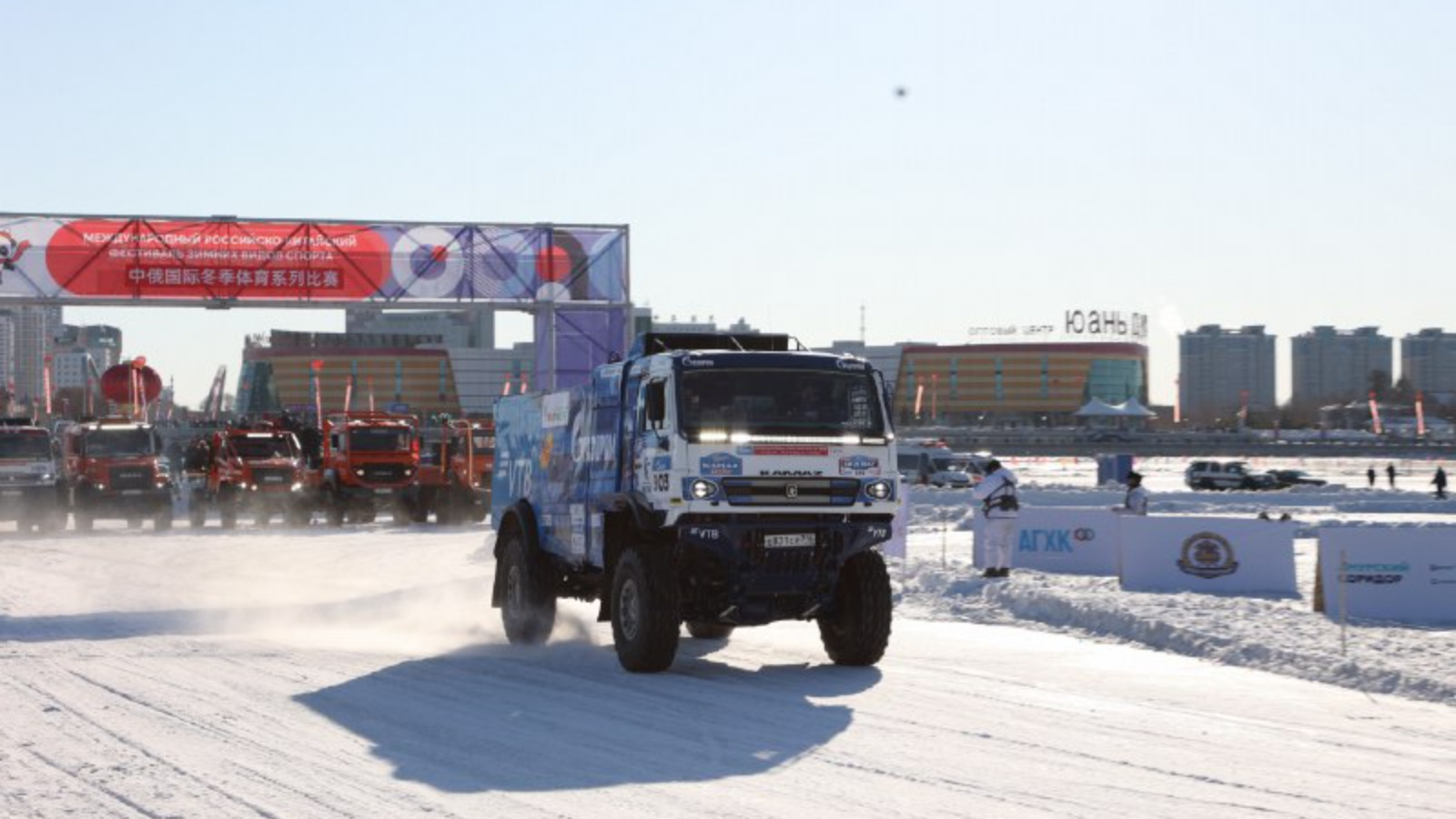 Легендарная команда «КАМАЗ-мастер» выступит на Международном российско-китайском фестивале зимних видов спорта в Благовещенске, который пройдёт с 28 февраля по 1 марта. Пилоты проведут показательные выступления на льду реки Амур.