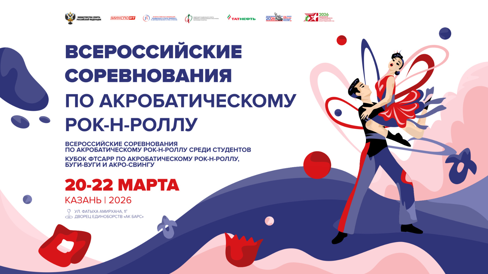 20-22 марта во Дворце единоборств «Ак Барс» (ул. Фатыха Амирхана, 1Г) пройдут Всероссийские соревнования по акробатическому рок-н-роллу, которые соберут более 2,5 тысяч спортсменов из 27 регионов. Среди участников соревнований действующие чемпионы мира, победители крупнейших международных стартов.