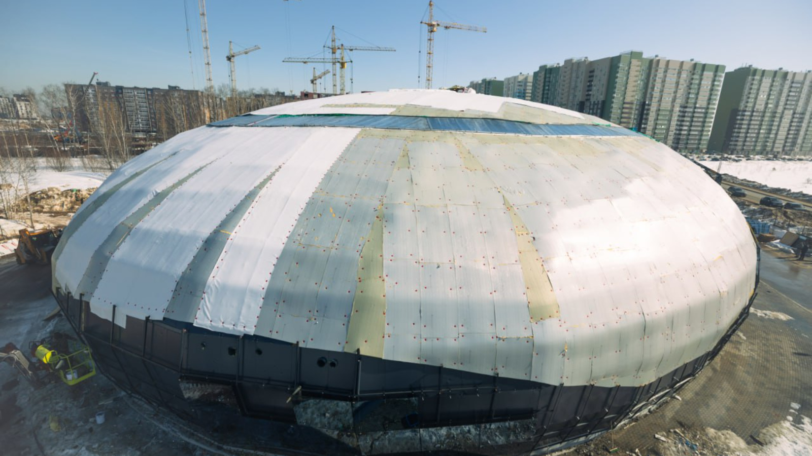 Следующим шагом станет устройство спортивной инфраструктуры. Уже через неделю планируется завершить подготовку оснований, после чего, ориентировочно через две недели, начнется укладка футбольного газона – материал для этого уже поступил на объект. По мере снижения влажности внутри помещения специалисты приступят к монтажу паркетного покрытия универсальной площадки, где разместятся зоны для баскетбола, волейбола и гимнастики. Параллельно продолжается сборка падел-корта: каркас конструкции уже установлен.