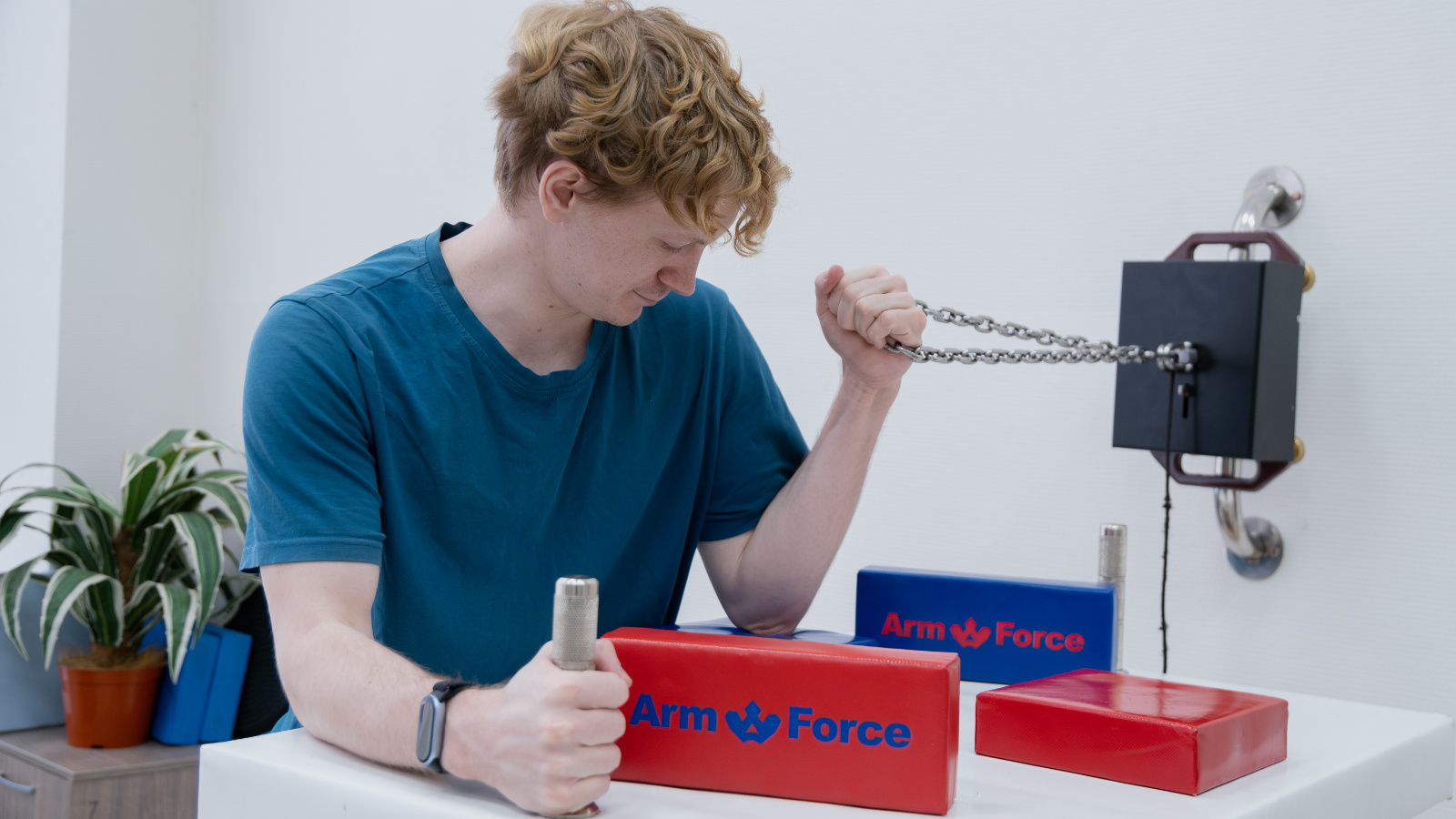 Благодаря креплениям динамометр можно фиксировать на любой устойчивой поверхности – и горизонтальной, и вертикальной. С помощью рычагов он закрепляется на месте под нужды спортсмена, который для измерения силы тянет за цепь. Внутри устройства находится тензодатчик, который считывает приложенные усилия.