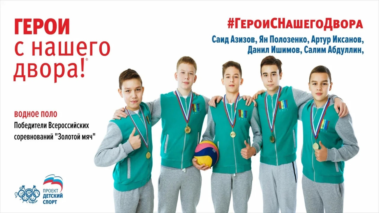 Бүгенге көндә безнең ишегалды Геройлары! ул җәйге һәм кышкы спорт төрләре спортчылары, физик мөмкинлекләре чикләнгән каһарманнар, спорт төрләре традицияләренең көче, безнең чемпионнарның иң яхшы тренерлары һәм әти-әниләре турында сөйли. Проект Татарстан Республикасы Президенты Рөстәм Миңнеханов ярдәме белән тормышка ашырыла
