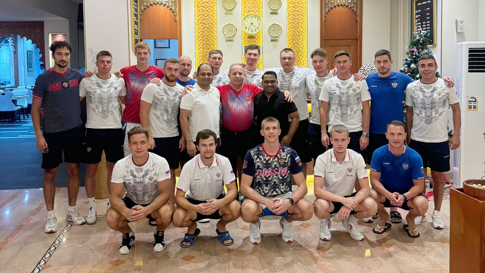 Исегезгә төшерәбез, Россия җыелмасын «Динамо-Ак Барс» КХТ (Казан) баш тренеры, Россиянең атказанган тренеры Араик Маргарян җитәкли. УТМда аңа шулай ук Казан клубының тренерлар штабы составына кергән спорт мастеры Тимур Тимашков ярдәм итте.