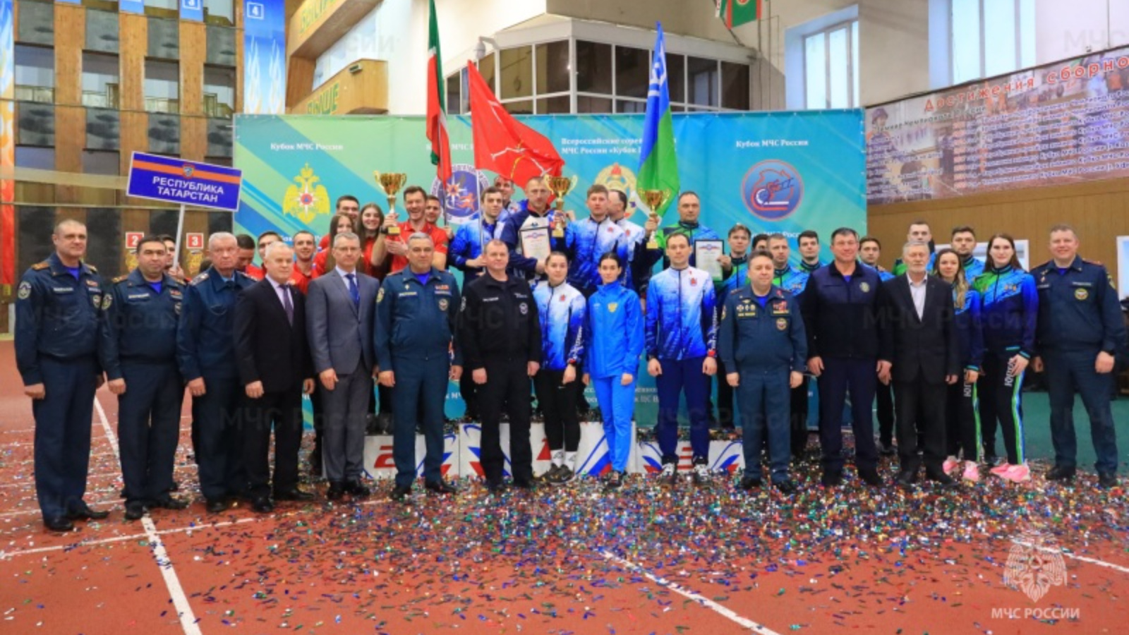Һәм, ниһаять, бүләкләү өчен янгын сүндерү-коткару спорты буенча 2025 елгы Россия гадәттән тыш хәлләр министрлыгы Кубогының команда зачетында җиңүчесе һәм призерлары чакырылган иде.
