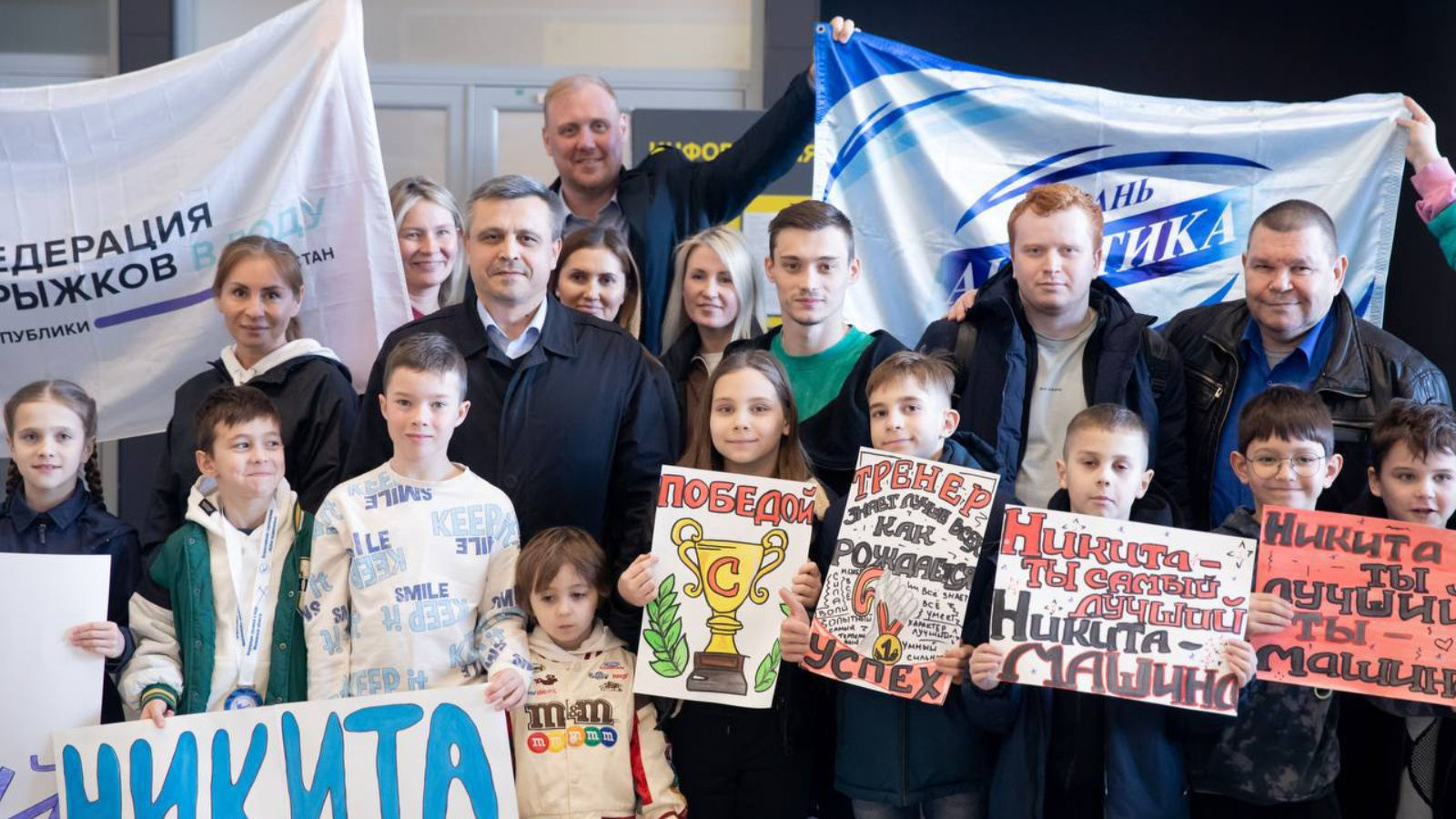 Очрашуда Спорт министрлыгы вәкилләре, шул исәптән Раиф Вафин һәм Константин Горбунов, шулай ук директор Лев Камешков җитәкчелегендәге «Акватика» спорт мәктәбе коллективы катнашты. Суга сикерү федерациясе үз чемпионын кулларында Никита Шлейхерны хуплау плакатларын тоткан күпсанлы тәрбияләнүчеләр белән бергә хупларга килде.