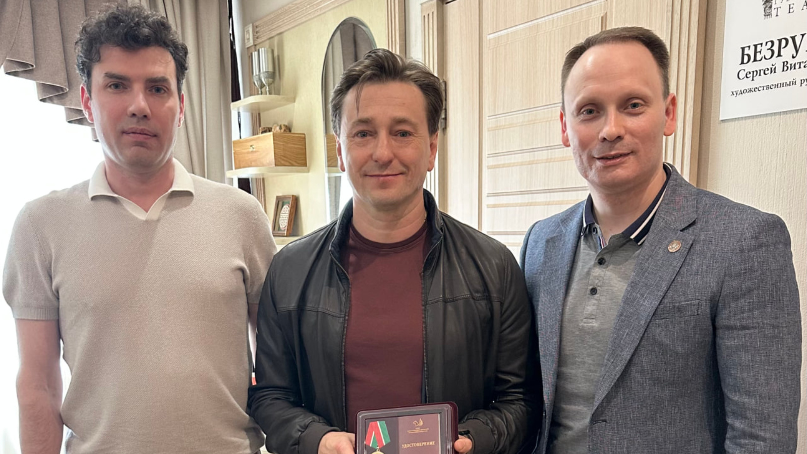 Чара кысаларында Александр Даренков танылган актерга бүләк тапшырды: Татарстан Республикасы җәмәгать эшлеклеләре берлеге президиумы карары белән мәдәнияткә һәм сәнгатькә күпьеллык өлеш керткәне өчен Россия Федерациясенең халык артисты Сергей Витальевич Безруков I дәрәҗә «җәмгыять алдындагы казанышлары өчен» медале белән бүләкләнде.