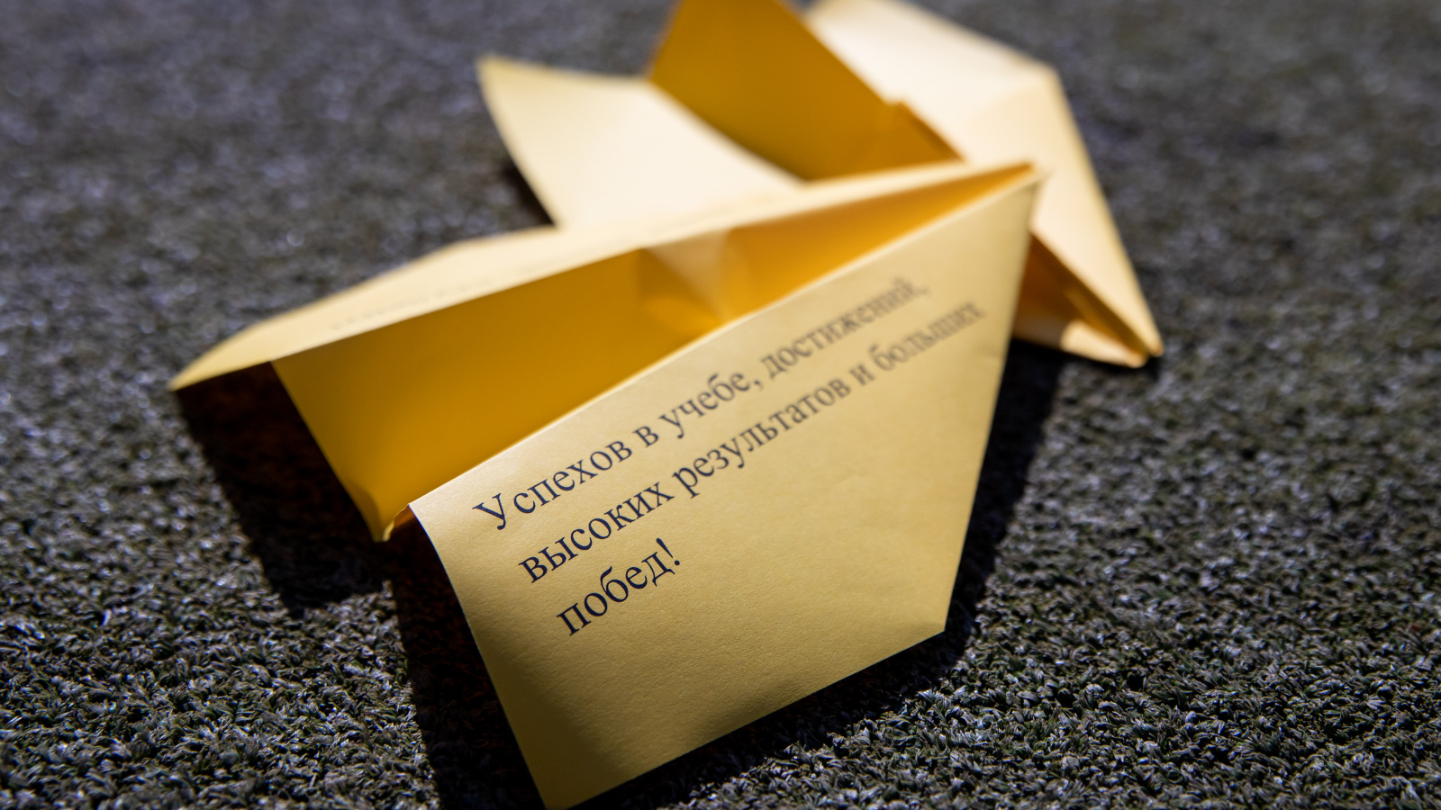 "Белем көне белән! Яңа уку елы белән, кадерле студентлар! Сезнең үз эшегезнең профессионалларыннан яхшы белем алу, иң яхшы спорт корылмаларында шөгыльләнү мөмкинлегегез бар. Киләчәгегез шундый ук якты һәм якты булсын! Бәйрәм белән!»